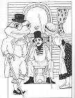 日文版的插畫之一:青蛙人和作餅乾的名人蛋糕小姐請擺渡人送他們過河 |