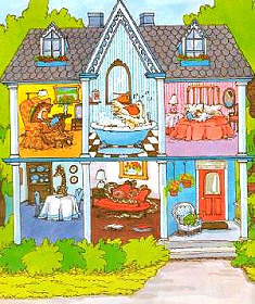 於是呢,在那以後每次只要布麗姬要到圖書館去,她的青蛙就留在家裡、母雞留在家裡、鷉鶘留在家裡、蟒蛇留在家裡、長頸鹿留在家裡、鬣狗留在家裡,然後呢,讓大象唸書給牠們聽呢!