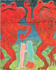| 美女蛙對「穿雨鞋的蛙」一見鍾情。 |