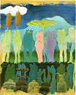 在松樹林和楢樹林下方的露草叢邊,住著三隻很自大、很調皮搗蛋的青蛙:想蛙、文蛙、辯蛙。牠們最喜歡作的事情之一,是坐在家門口看雲(宮澤賢治在此用玉髓、蛋白石等形容雲的形狀。這是他寫作的特色,總是用各種礦物來打比方。在日本有一本書,專門解析宮澤賢治作品中的礦物)。