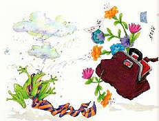 然後,青蛙校長回想起魔術師唸的咒語,自己默唸過一次以後,就恢復人形啦!大家都很高興,而校長呢,則還殘留著一點點後遺症-他偶爾會吞一兩隻蒼蠅當點心呢。
