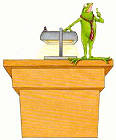 | 青蛙校長對小朋友們作「精神訓話」 |