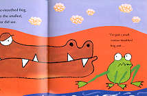平面書中的大嘴蛙也有同樣的遭遇,只不過牠碰上的鱷魚是褐色的而已。