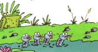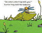 話說有一天,青蛙阿姨「花枝招展」地打扮了一番(不知要去那裡)。她在臨走之前,交待蝌蚪們:「要好好的聽小青蛙的話喔」。