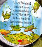dogs)」。但是更勁爆的事實是:在1939年時,在英國曾經下過「青蛙雨」呢!這種比虛構故事還離奇的事,還真的是會發生的喔。