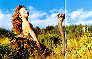 鴕鳥上,嫌鴕鳥太「愛護」她而不肯撒腿跑的 Tippi。但是光坐在鴕鳥背上,也是一副非常享受的樣子(這張圖也被圓神出版社印出來當海報贈送讀者)。 |