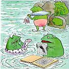 小牛蛙盯著照片看,簡直就是嚇壞了!「這不會是我!那和青蛙差了十萬八千里!」