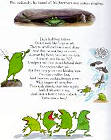 可是,牠突然聽見牠所有的兄弟姐妹們的大合唱:「小牛蛙寶寶長得一點也不像青蛙,牠們既小又黑還黏黏的,既不能跳也不能爬。有個大頭、兩個小點似的眼睛……」
