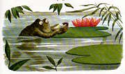 蟾蜍媽媽趁著夜晚,把拇指姑娘連著核桃床一起搬到荷葉上去! |