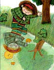 鳥兒在樹上振翅,聽起來像是樹在鼓掌一樣。我們鞠個躬對青蛙說再見,踏上回家的路。