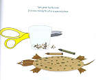 用蠟筆在兩個紙盤子上分別畫出你最喜歡的烏龜的背面和腹面。等畫完之後,把小石子(或沙子)倒在畫了烏龜腹面的那一個紙盤子上,再蓋上畫有烏龜背面的那個紙盤子。在兩個紙盤接合的部份塗上厚厚的一層白膠、壓緊、放乾。在等白膠乾的期間,用剪刀把碎布剪出烏龜的頭和腳、尾巴,一樣用白膠給黏到「烏龜身體」上,就能夠作出自己獨一無二的烏龜書鎮了。