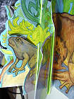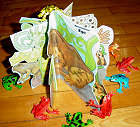在這「本」可以站起來變成「屏風」的小書中,還附了十隻塑膠蛙,可以自己佈置它們的「生活環境」。 |