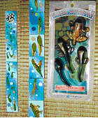 巫婆收集的玩具中有各種時期的蝌蚪的,也有從卵到蛙的「翻翻板」(有人能替我解惑,告訴我照片左邊這個會翻來翻去的板子玩具的「真名」嗎?) |