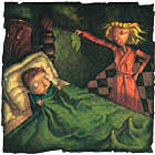 青蛙王子再一次解釋了自己的身份。巫婆雖然信了,但仍然不希望冒險讓任何王子去親睡美人,所以她就開始找咒語要下到王子身上。王子當然飛也似的溜走了。