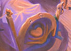 注意看巫婆的床喔!四根床柱上都有一隻青蛙、而且床腳(?)就像隻張大嘴巴的青蛙呢。 |