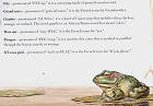 在這隻青蛙「頭上」的是索引,告訴讀者幾個重要的、在書中經常出現的法語所代表的意義。大家就知道這本書多富教育意義啦!還可以學一點法文呢。 |