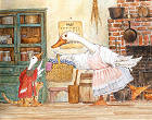 鴨鴨版的媽媽也是給小紅帽一籃東西去慰問生病的外婆。 |