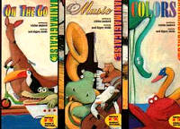 這一套書除了『音樂』之外,還有以『形狀』及『交通工具』為主題的『猜猜我是誰』。以形狀來說,有斑點、條紋、五角形、直線、大塊的黑白斑、長條的黑白曲線等等。有些動物甚至根本不必看到圖就能夠猜得出來,所以這可算是套書中最簡單易猜的一本書。