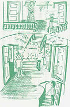 柯太太的子是幢又大又舊的西班牙式房子,荒蕪的院子裡長滿了又高又細的常綠樹及矮小的灌木叢,而且還有一顆大樹長在房子的正前方,幾乎遮住柯太太的姪孫住的臥室的窗子。