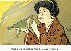 這是一張古時候的浮世繪,繪製的年代是1716年!而且用麥桿「吹」青蛙的居然是個女生!真是讓人不敢相信自己的眼睛。原來日本的文化傳承,是連這種可以廢了的虐待動物法都一併傳下來的呀。 |