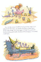 她們到了野餐場地,揮著魔杖說:「蝙蝠翅起、蝙蝠翅落、把野餐捲跑」,隨著咒語,所有的食物都被吹到了小朋友們的身上、黏到小朋友們的衣服上,害每一個人都只好餓著肚子回家。