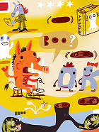作者一定和我一樣,討厭又吵又鬧的地方。因為他說在有吵鬧的音樂及尖叫聲的地方,絕對沒有辦法思考。因為當沒有腦袋的人在大吼大叫「嘿!」或「哇喔!」的地方,所有的點子(idea)都會去找個藏身處(hideaway)躲起來了。