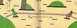 大家當然猜得出來,在接下來的故事中,就是個子一隻比一隻大的蛙類,輪流加入快要輸的那一邊,而快要輸的一方,一定都不肯罷休的大聲喊:「誰要放手」。