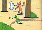 在大家赫然發現自己是在「拔蛇」以後,所有的蛙類立刻作鳥獸散,四下逃竄。 |