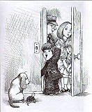 當小男孩正在跟他的狗和烏龜道別的時候,青蛙鑽進了他的西裝口袋中,可是他並沒有發現,就高高興興的揮著手出門,只留下了兩隻低頭「不語」的動物。