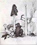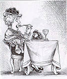 這隻青蛙很好事,不僅跳進人家酒杯中,居然還想要親吻人家的男伴哩。 |