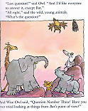 所以他們全部都去拜訪蝙蝠。貓頭鷹問蝙蝠介不介意回答牠幾個問題,蝙蝠說牠不介意。為了道德問題,貓頭鷹的問題就請大家買書來看喔。