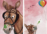 經過爵士樂城,朝上飛……從蜻蜓身上掉下來,掉在一匹馬的臉上。